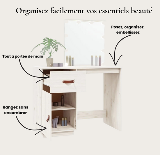 Son format compact permet de créer un coin beauté organisé et fonctionnel, sans encombrer la pièce.